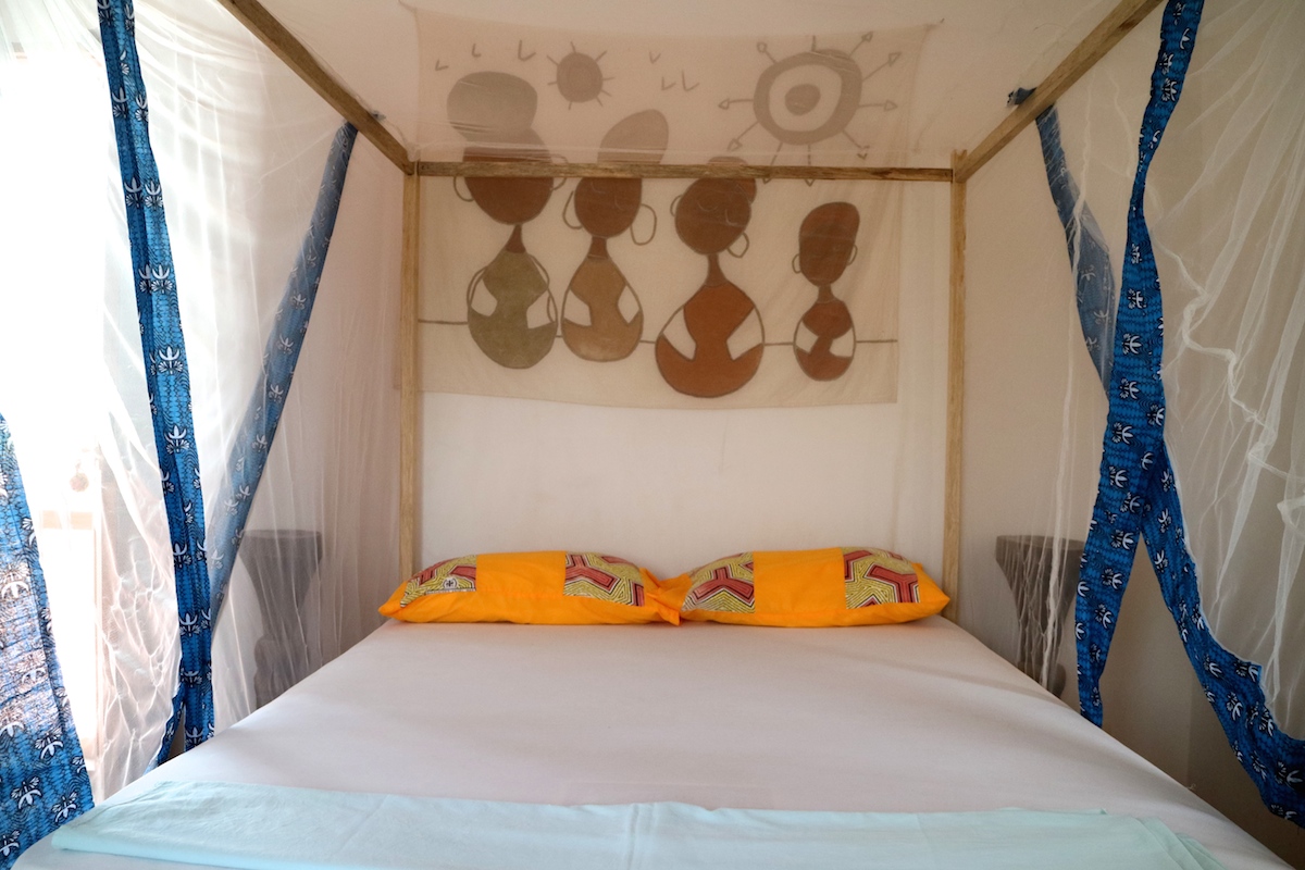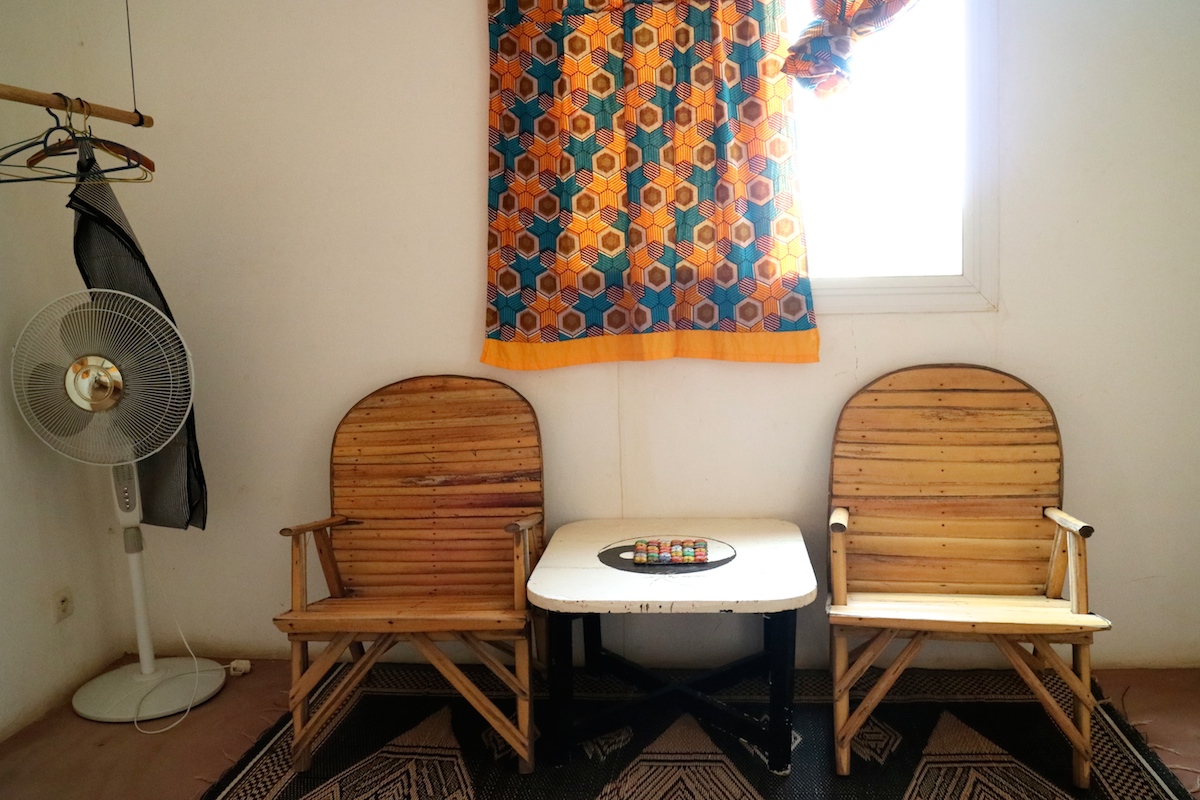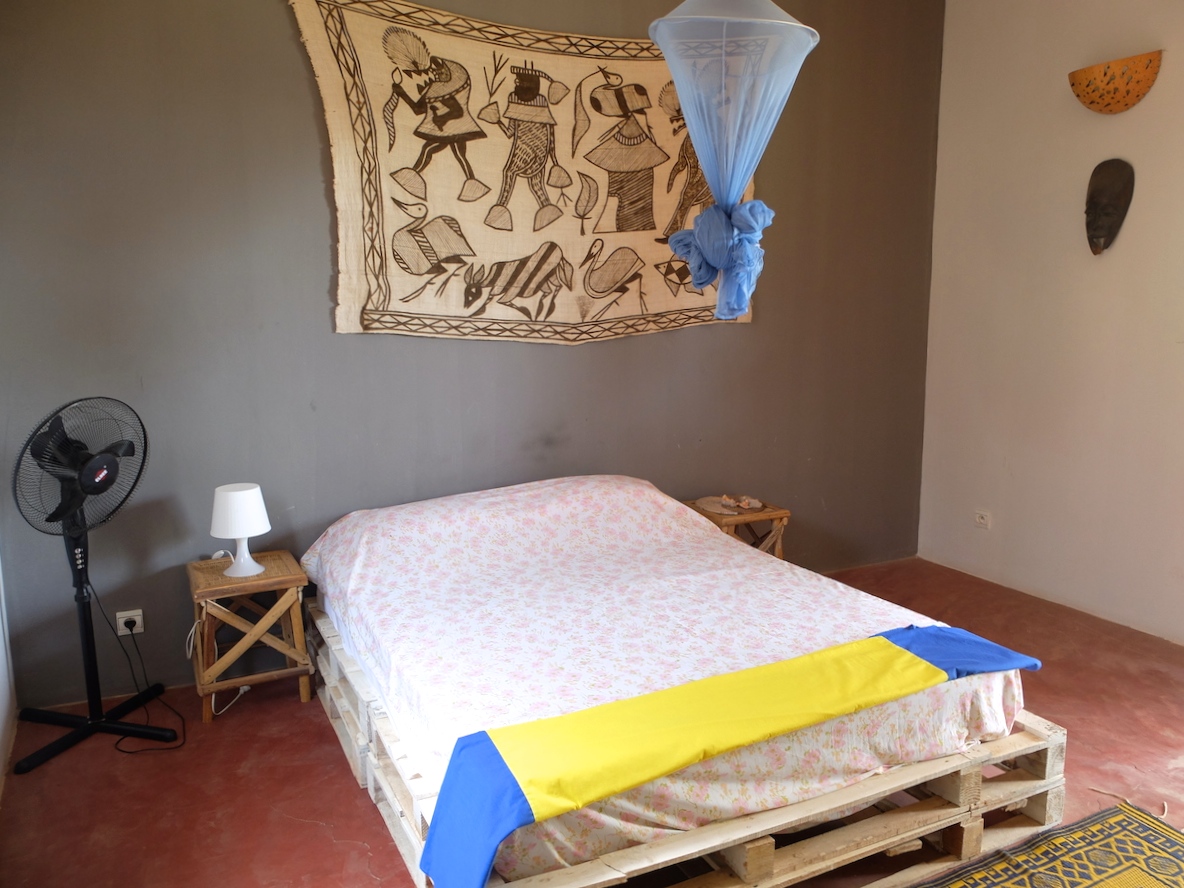 🇫🇷 Au Begue Pokai il y a des grandes chambres doubles avec acces sur le jardin et la terrasse et un dortoire avec 6 lits insipiréess aux car rapids, les trasports en commun tipic de Dakar.